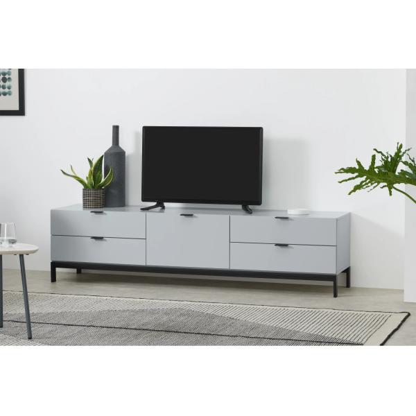 Hotel Wide Media Gray TV Stand With Multiple Drawers Iron Base Large Storage Space Images |
